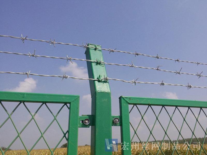 刺繩隔離網(wǎng),刺絲護(hù)欄網(wǎng),刺鐵絲隔離柵,刺繩護(hù)欄網(wǎng),鍍鋅刺網(wǎng)。宏州護(hù)欄網(wǎng)廠生產(chǎn)的產(chǎn)品主要分鍍鋅,浸塑兩種,是以立柱加刺繩制作而成, 刺繩刺鐵絲。