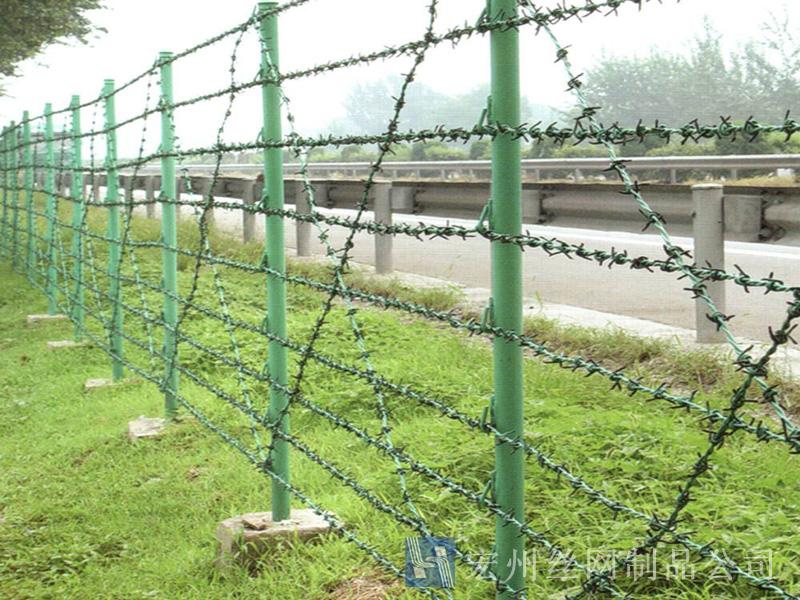 刺繩隔離網(wǎng)產(chǎn)品用途:由于刺線網(wǎng)造型獨(dú)特,因而能達(dá)到極好的防護(hù)效果。泛應(yīng)用于軍事、監(jiān)獄、看守所、政府機(jī)關(guān)、銀行、以及生活小區(qū)的圍墻,私人住宅、別墅的圍墻門(mén)窗,高速公路、鐵路護(hù)欄,邊境線等用來(lái)防固保安的隔離圍墻,明顯已成為高級(jí)圍籬之主流。