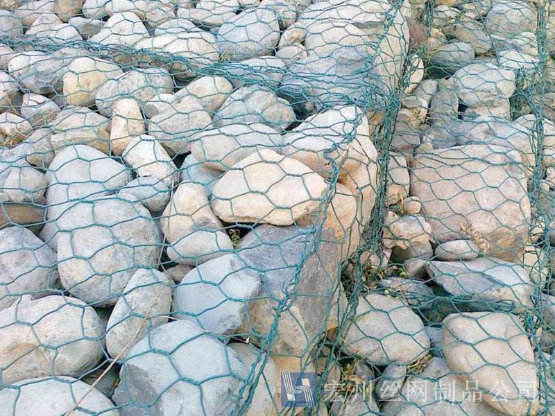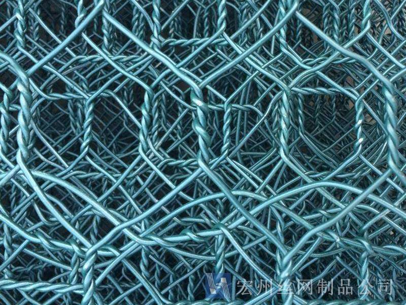 (3)鍍鋅鋼絲包塑:優質低碳鋼絲,在鋼絲的表面包一層PVC保護層,再編織成各種規格的六角網。這層PVC保護層將會大大增加在高污染環境中的保護,并且通過不同顏色的選擇,使其能和周圍環境融合。